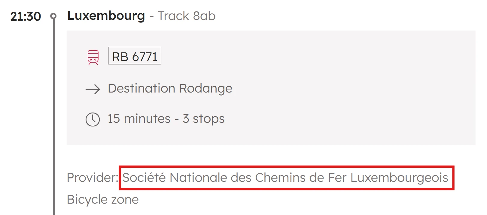 You can use the journey planner to search for trips and trains. For each train in a connection, the operator (Provider) is indicated.